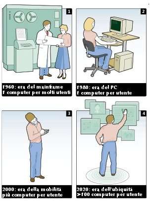 Secondo gli esperti, quella attuale è l’era del passaggio ai dispositivi portatili, mentre il 2020 sarà l’era dell’ubiquità . Il termine ubiquità indica la qualità di essere presenti contemporaneamente in ogni luogo. Il riferimento è chiaro: già oggi grazie ad Internet siamo in contatto con quasi ogni parte del mondo in tempo reale. Nel futuro, secondo Microsoft, questo aspetto sarà acutizzato: ogni persona avrà a disposizione centinaia di computer e di dispositivi presenti in ogni luogo – case, automobili, uffici, scuole, strade, piazze, luoghi pubblici – costantemente collegati alla rete, fondando le basi per quella che viene chiamata iperconnettività .