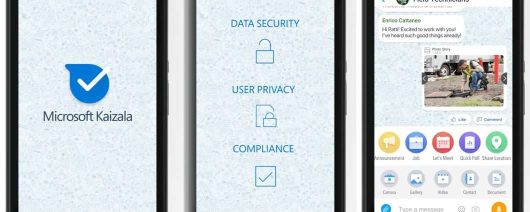 Kaizala ha caratteristiche che richiamano alla mente altre soluzioni Microsoft dedicate alla comunicazione e destinate alla cosiddetta Firstline Workforce composta da coloro che operano principalmente in movimento o che comunque non dispongono di una postazione fissa in ufficio: tra queste Teams, F1 e StaffHub. In questo caso il focus è però sull’esperienza mobile, con un’interfaccia e una modalità di interazione ottimizzate appositamente per gli smartphone.