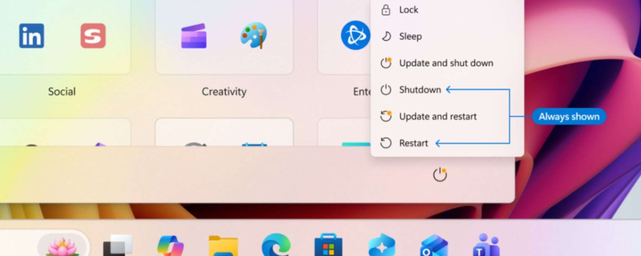 Opzioni sempre visibili nel menu di accensione per riavviare o spegnere senza eseguire aggiornamenti. Non si dovrà più scegliere tra “aggiorna e riavvia” o “aggiorna e spegni”, ci sarà sempre l’opzione per fare entrambe le cose senza aggiornare.