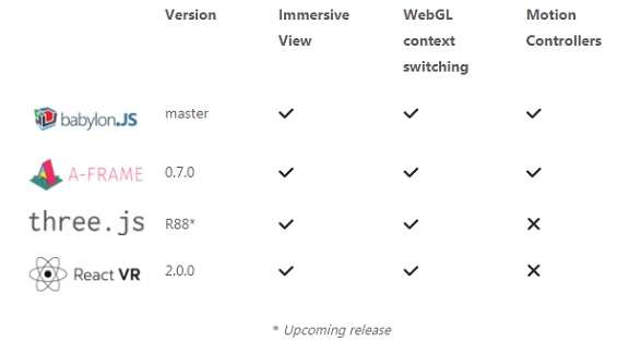 Per quanto riguarda Microsoft Edge, il nuovo engine EdgeHTML 16 comprenderà una versione aggiornata dell’implementazione Microsoft di WebVR , lo standard atto a introdurre la realtà virtuale all’interno della navigazione Internet . I principali framework WebVR supportano – o supporteranno – la piattaforma Windows Mixed Reality.