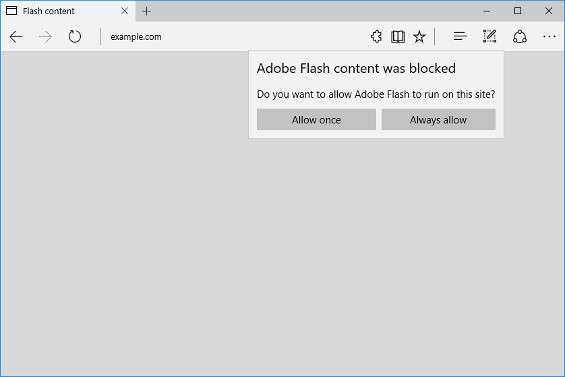 Già dall’Anniversary Update di luglio il browser Edge confina i contenuti Flash considerati secondari, come l’advertising, nella modalità “click-to-play”. Per incoraggiare gradualmente la transizione allo standard HTML5, il prossimo aggiornamento prevede ulteriori restrizioni: se il sito visitato supporta pienamente HTML5 i contenuti Flash saranno ignorati, con il risultato di “migliorare le perfomance, la durata della batteria e la sicurezza”. Nel contesto dei siti che si affidano ancora al plugin di Adobe, Flash sarà disabilitato di default per tutti i contenuti e saranno gli utenti a decidere del suo caricamento.