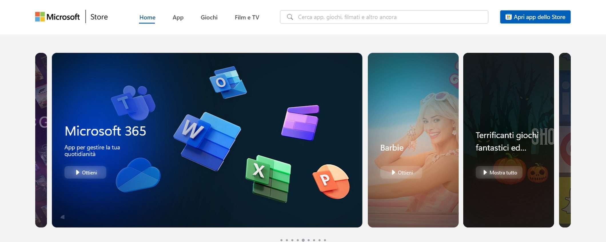 C’è un carosello con vari contenuti all’inizio della pagina, quindi app essenziali, più popolari gratis, per produttività, musica e creatività. Ci sono infine nuovi giochi per PC, offerte settimanali, nuovi film, film/serie TV più vendute e raccolte.