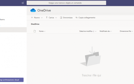 - OneDrive è collegato per impostazione predefinita. Se vuoi, seleziona un altro provider di archiviazione cloud da utilizzare in Teams.