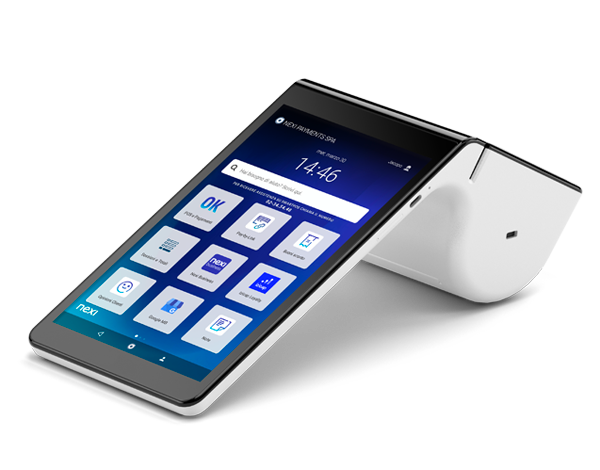 Dotato di stampante termica e una base di ricarica, può essere posizionato accanto al registro di cassa. In alternativa, si può rimuovere il terminale dal dock e portarlo ovunque con sé, accettando pagamenti anche fuori dal punto vendita.