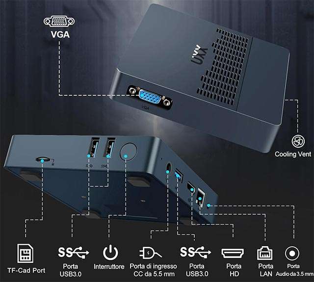 Il sistema operativo preinstallato è Windows 10 Pro con licenza ufficiale Microsoft per ricevere gli aggiornamenti rilasciati e le patch di sicurezza. Al prezzo finale di soli 89,99 euro, il Mini PC del marchio UXX è un ottimo affare per chi cerca un dispositivo di questo tipo da dedicare alla produttività di base, allo studio, alla navigazione o all’intrattenimento multimediale nel tempo libero.