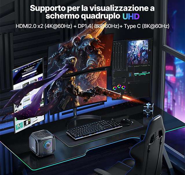 Il tutto è contenuto in un case dal design unico con sistema di illuminazione RGB e ventole per una dissipazione efficace. Devi solo attivare il coupon e ACEMAGIC TANK 03 sarà sulla tua scrivania entro pochi giorni.