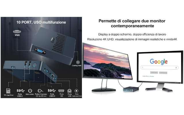 Oggi puoi aggiudicarti un fantastico Mini PC ricco di funzionalità e molto potente a soli 92,99 euro. Lo trovi su Amazon applicando il Coupon 40€. Per attivarlo devi solo fleggare l’apposita casellina visibile direttamente sulla pagina dell’articolo. Tra l’altro hai anche la consegna gratuita inclusa nel prezzo e la possibilità di pagare in comode rate con Cofidis se sei un abbonato Prime. Cosa stai aspettando? Fallo prima che le scorte finiscano in sold out.