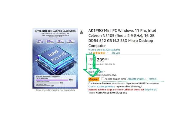 Attiva il Coupon 100€ e acquista l’ottimo Mini PC AK1PRO a soli 199 euro, invece di 329 euro. Una doppietta sorprendente visto lo sconto del 9% e l’extra di 100 euro da applicare direttamente sulla pagina dell’artico. Attualmente la disponibilità è immediata, ma presto potrebbe diventare limitata vista la grande richiesta di queste ore. Perciò devi essere velocissimo.