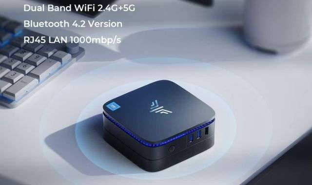La connettività wireless di questo mini PC è affidabile e stabile, con supporto per il WiFi a 2,4 GHz e 5 GHz. Con una connessione veloce e senza interruzioni, potrai aprire siti web in pochi secondi, guardare film senza buffering e scaricare file senza problemi. Inoltre, puoi collegare il tuo mouse e la tua tastiera wireless grazie al Bluetooth 4.2 integrato.