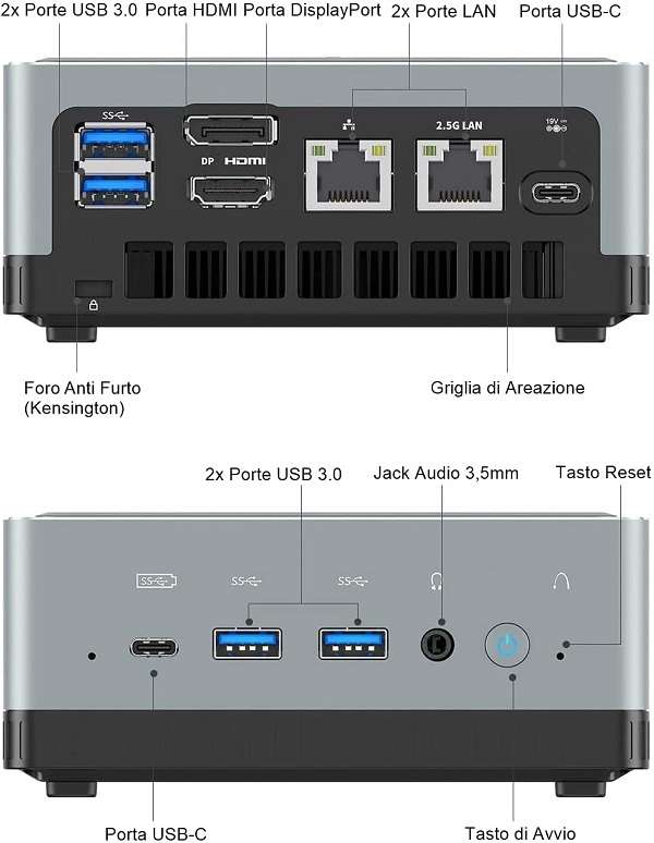 Dal punto di vista della connettività ritroviamo davvero il top assoluto. Quattro le porte USB Type-A, tutte con specifica USB 3.0 ad alta velocità per il trasferimento dati. Due le uscite audio/video, una HDMI e l’altra DisplayPort. Due sono anche le porte USB Type-C, una delle quali insieme alle uscite HDMI e DisplayPort permette di collegare fino a 3 monitor 4K. Per la connessione via cavo troviamo invece due porte RJ45, una Gigabit LAN mentre l’altra 2,5Gbit, che se combinate forniscono velocità di trasferimento incredibili coadiuvata dalla stabilità del cavo. Tuttavia non mancano le connessioni wireless che prevedono Wi-Fi 6 e Bluetooth 5.1. In sostanza quindi parliamo senza dubbio di un PC di fascia alta, non di certo economico, ma indirizzato a chi necessita di alte prestazioni. Un computer per chi vuole una vera alternativa al classico PC desktop, in un formato estremamente compatto, facile anche da trasportare.