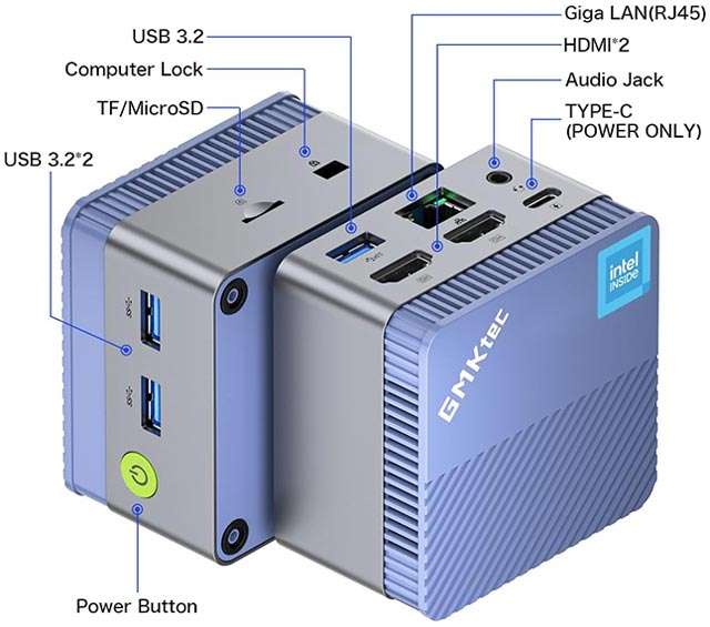 Partiamo dal software: c’è il sistema operativo Windows 11 Pro, preinstallato e incluso nella spesa, così da non costringere a dover acquistare una licenza a parte. Concentrando invece l’attenzione sulle specifiche tecniche, ci sono il processore Intel N97 di dodicesima generazione con chip grafico Intel UHD affiancato da 12 GB di RAM DDR5 e da un’unità SSD da 512 GB (espandibile fino a 2 TB) per lo storage, i moduli Wi-Fi dual band e Bluetooth 4.2 per la connettività wireless, lo slot Ethernet per quella cablata, tre porte USB 3.2 Type-A, una Type-C (per l’alimentazione), il jack audio, lo slot microSD e due uscite HDMI con il supporto alla risoluzione 4K. Scopri di più nella scheda completa.
