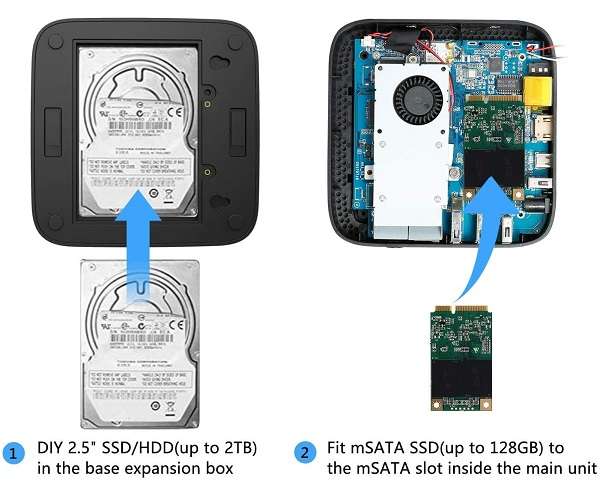 Il PC è equipaggiato con un processore Intel Celeron J3455 da 4 core e 4 thread per una frequenza massima di 2,3GHz. A questo si affiancano 6GB di memoria RAM e 128GB per l’archiviazione, questi ultimi naturalmente espandibili. È possibile, infatti, sostituire l’SSD mSATA preinstallato con uno più capiente, aggiungere una microSD fino a 128GB, o aggiungere un ulteriore disco HDD/SSD da 2,5 pollici. Non si tratta di una configurazione dalle grandi prestazioni chiaramente, tuttavia è un ottimo alleato per la vita di tutti i giorni. Che si tratti di elaborare documenti con il pacchetto Office, piuttosto che navigare in internet o godere dei contenuti multimediali in streaming su Netflix, Prime Video o Disney+, il PC riesce a gestire tutto in maniera rapida e fluida. Un’ottima soluzione anche come media center al posto dei tradizionali TV box.