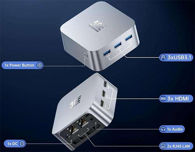 ACEMAGICIAN T8 Plus fa invece del design compatto e del sistema operativo Windows 11 Pro preinstallato i suoi punti di forza. È in sconto a 256 euro (-36%), integra il processore Intel N95, 16 GB di RAM e SSD da 1 TB.