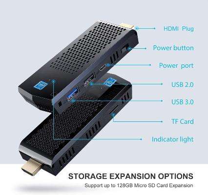 Questo Mini PC è certamente più piccolo del tuo smartphone e puoi portarlo ovunque sempre con te. Dotato di 8GB di RAM e di una memoria interna da 128GB ti permette di eseguire senza problemi Windows 10 Pro, navigare in internet e usare i comuni programmi per la produttività.