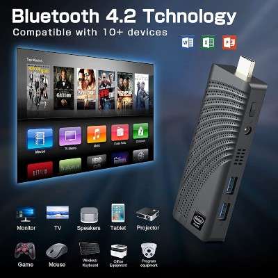 La confezione include un Mini PC Stick, un alimentatore, un cavo di prolunga HDMI e un manuale utente. Tutto questo a soli 149,99 euro se applichi il coupon sconto che trovi in pagina. Affrettati!