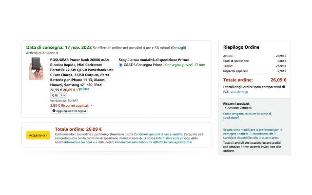 Acquista ilMini Power Bank POSUGEARa soli 26 euro, invece di 28,99 euro. Ottieni questo prezzo applicando il coupon del 10% visibile sulla pagina dell’articolo. Compatibile con tutti i dispositivi mobili di ultima generazione, questo salvavita ha una potenza di 20.000 mAh e una ricarica rapida da 22,5W Quick Charge 3.0.