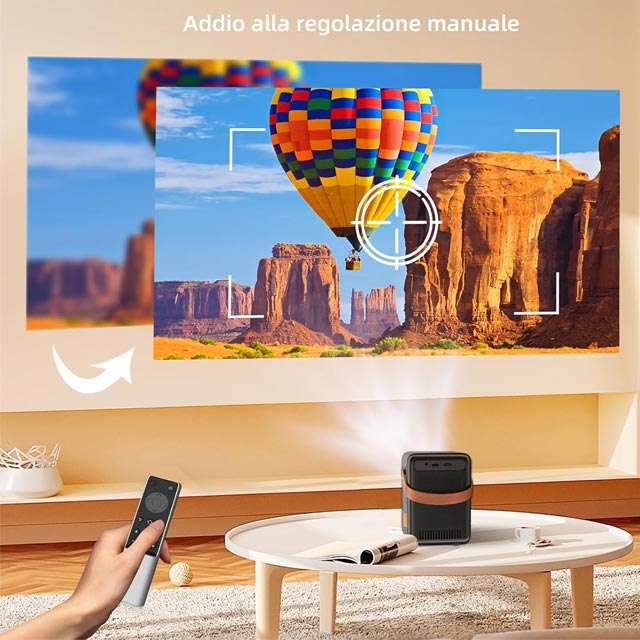 Garantisce il supporto alla risoluzione Full HD ed è dotato della connettività wireless Wi-Fi e Bluetooth. Tra gli altri punti di forza vale l pena segnalare la luminosità che arriva a 9.500 lumen, gli altoparlanti integrati che rendono opzionale il collegamento di casse esterne, le porte HDMI e USB per le periferiche. Non mancano, inoltre, la messa a fuoco automatica e la possibilità di ricorrere alla correzione trapezoidale dell’immagine (fino a 300 pollici di diagonale). L’ingombro è davvero ridotto al minimo: solo 12,6×14,6×18,3 centimetri, il peso si attesta a pesa 1,3 chilogrammi. Per saperne di più, rimandiamo alla descrizione completa.