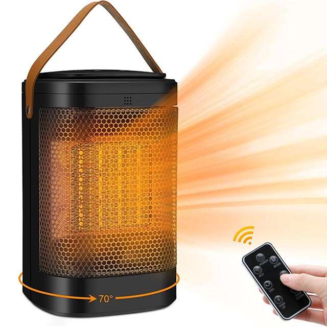 Ha dimensioni compatte (14x15x24 centimetri) e può essere posizionato ovunque. È in grado di ruotare fino a 70 gradi per distribuire il calore in modo uniforme in tutto l’ambiente. Sulla parte superiore sono presenti i pulsanti utili per controllarne il funzionamento (in dotazione c’è anche il telecomando), integra un timer con spegnimento automatico programmabile (da 1 a 12 ore), è grazie alla sua potenza fino a 1.500 W è in grado di scaldare anche nelle giornate di inverno più fredde. Ancora, d’estate può svolgere il compito di ventilatore, limitandosi a far circolare l’aria. Per saperne di più rimandiamo alla descrizione completa.