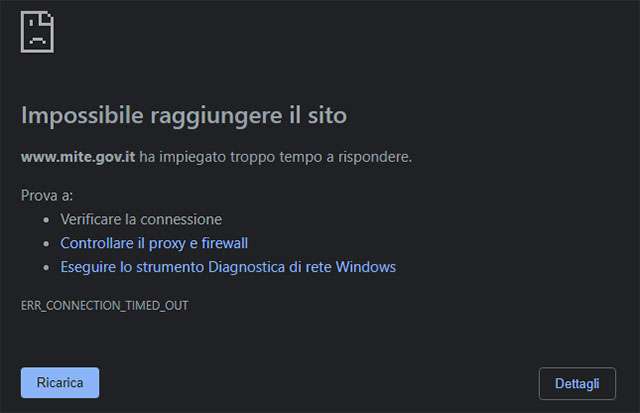 Dai profili social (Facebook, Twitter) del MITE non è giunto alcun aggiornamento in merito all’accaduto o alle procedure di ripristino che immaginiamo essere in atto.