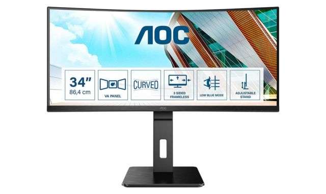 AOC CU34P2A è un monitor curvo da 34 pollici pensato per farti immergere completamente in quello che fai: con formato ultra-wide 21:9 e risoluzione WQHD di 3440×1440 pixel oggi puoi acquistarlo su Amazon a soli 296,99 euro, con possibilità di attivare il pagamento a rate al checkout.
