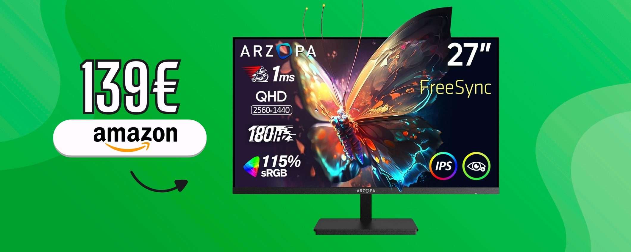 Per appena 138,53€ su Amazon, il monitor gaming da 27 pollici di Arzopa è quello giusto da acquistare. Approfitta dello sconto e del coupon per portarlo a casa a questo prezzo speciale.
