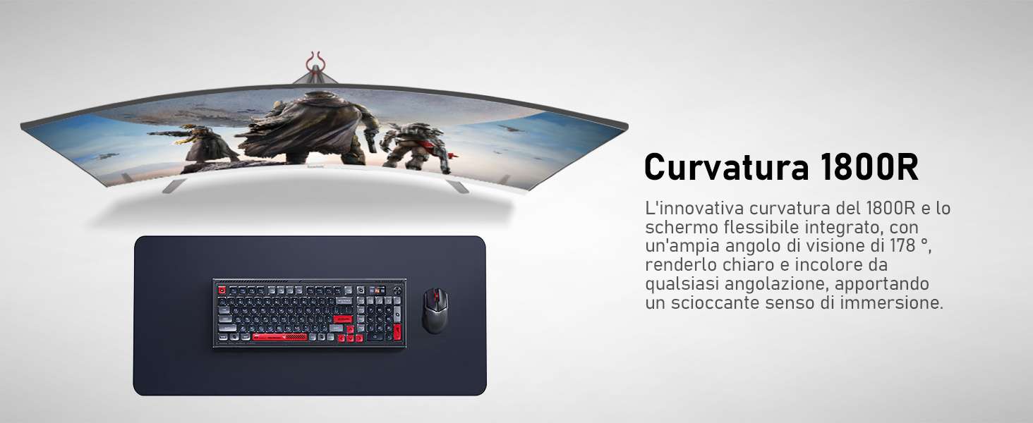 Con il monitor gaming curvo da 27″ Gawfolk avrai un’esperienza d’immagine coinvolgente e priva di distorsioni che ti permette di immergerti realmente nelle dinamiche dei tuoi giochi preferiti. La curvatura 1800R ti restituisce un’immagine chiara e impeccabile da qualsiasi angolatura.