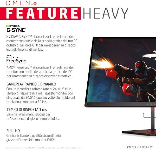 Monitor gaming HP Omen X 25: caratteristiche tecniche