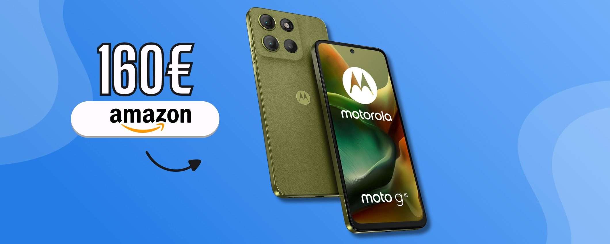 A soli 160,97€ su Amazon, il Motorola moto g15 è lo smartphone da non farsi scappare. Collegati ora in pagina e con uno sconto del 19% completi l’acquisto potendo pagare anche in 5 rate senza interessi.
