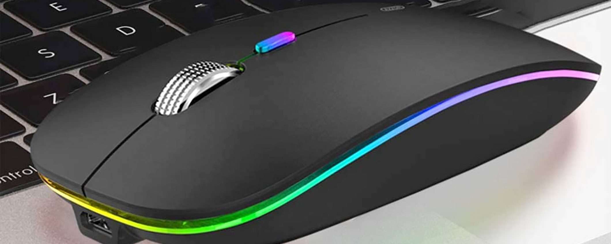 Al suo interno è presente una batteria ricaricabile e ha in dotazione l’adattatore USB per la connessione senza fili a computer e device. No manca nemmeno un sistema di illuminazione RGB alquanto scenografico. Puoi scegliere tra diverse colorazioni, il prezzo non cambia: Argento, Bianco, Oro rosa, Rosa, Nero opaco e Blu.