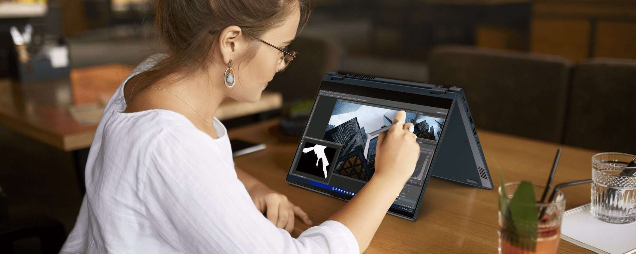 Il ThinkBook 14s Yoga ha invece uno schermo touch da 14 pollici con risoluzione full HD, fino a 40 GB di RAM DDR4, SSD PCIe fino a 2 TB (dual slot), uscita HDMI, due porte USB Type-A, una porta Thundebolt 4, una porta USB Type-C, jack audio da 3,5 millimetri, slot microSD, stilo Smart Pen e batteria da 60 Wh.