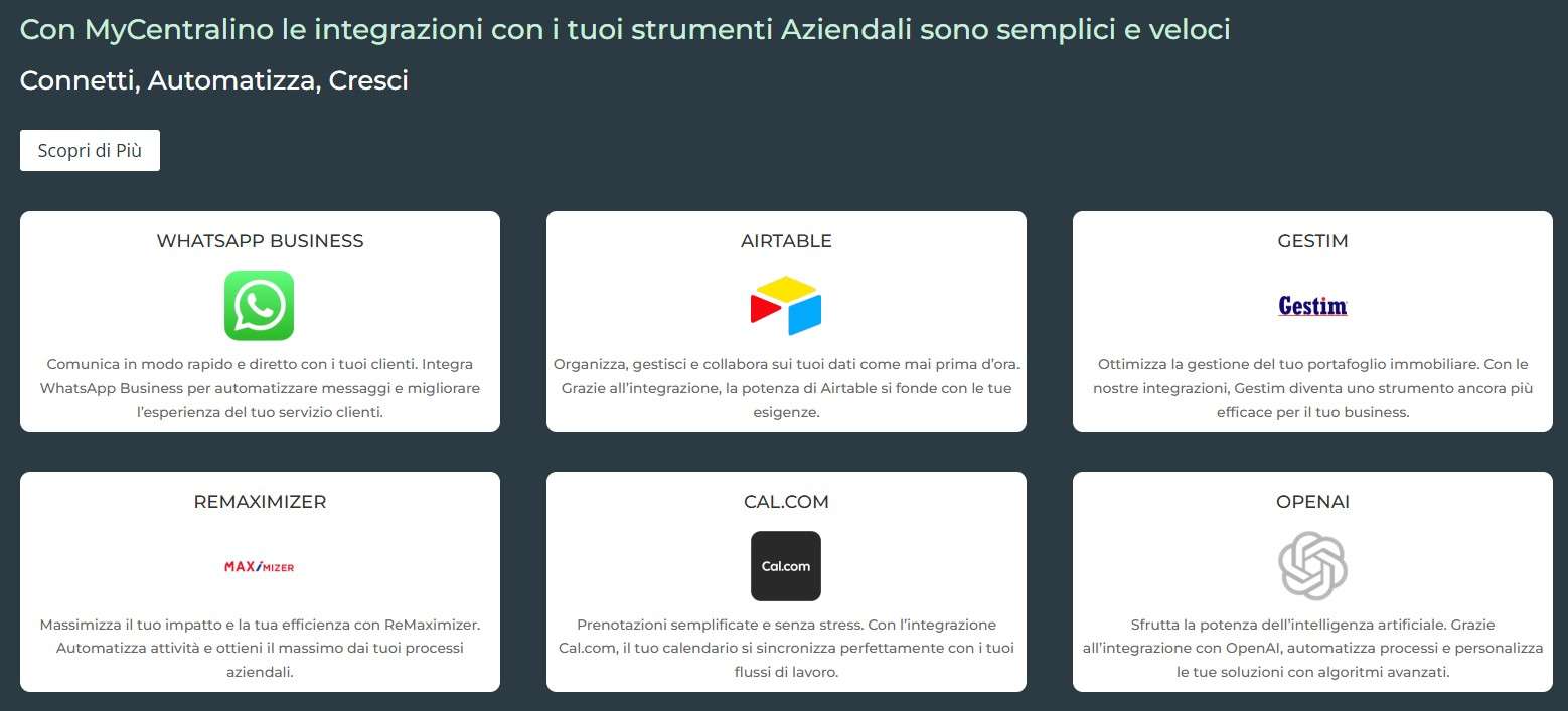 Non mancano poi le integrazioni con strumenti aziendali di vario tipo come WhatsApp Business, AirTable per l’organizzazione e la gestione dei dati, l’intelligenza artificiale di OpenAI, le funzionalità per l’automazione di Zapier e Make.com, i tool per la pianificazione dei progetti di Trello e molto altro.