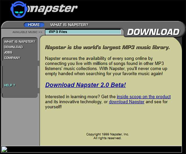 L’idea originale, di Shawn Fanning e Sean Parker, era piuttosto semplice: permettere a chiunque di condividere con gli altri la propria libreria di file MP3. Cosa avrebbe mai potuto andare storto, nell’epoca in cui il mondo intero si stava dotando di un accesso alla grande Rete?