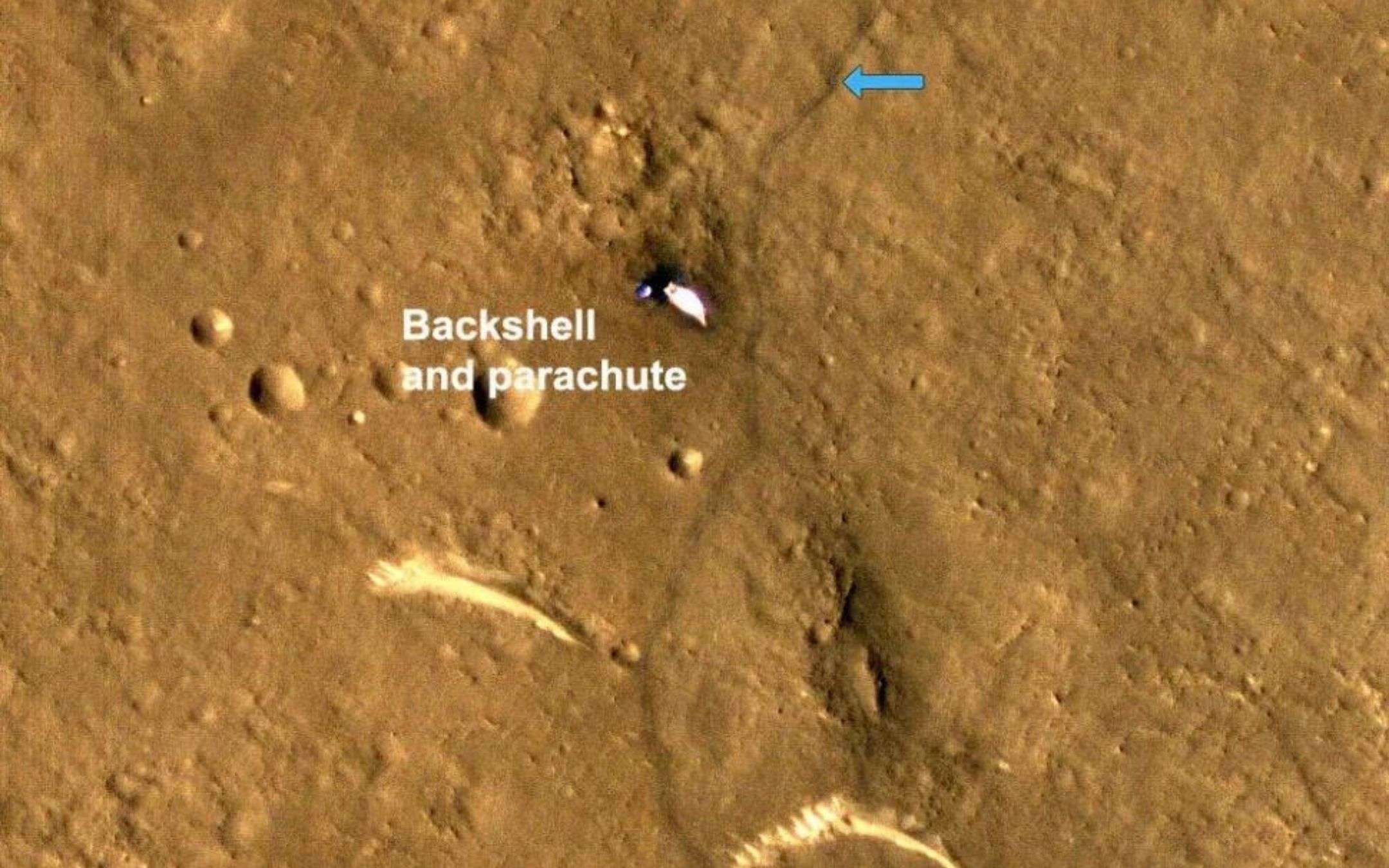 Partito a maggio del 2021, nella foto si può vedere tutto il percorso fatto da Zhurong nel corso di questi mesi: si tratterebbe di circa 1,5 chilometri. Nello scatto si vedono persino il paracadute e il guscio posteriore che hanno attutito la caduta del rover sul suolo marziano.