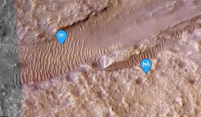 La missione è stata un grande successo. Ingenuity ha completato 72 voli, raggiungendo un’altitudine massima di 24 metri e coprendo una distanza totale di circa 17 Km, nonostante un sensore rotto (inclinometro), le tempeste di polvere e i rigidi inverni marziani. Nell’immagine si vede l’attuale posizione di Ingenuity (a sinistra) e Perseverance (a destra).