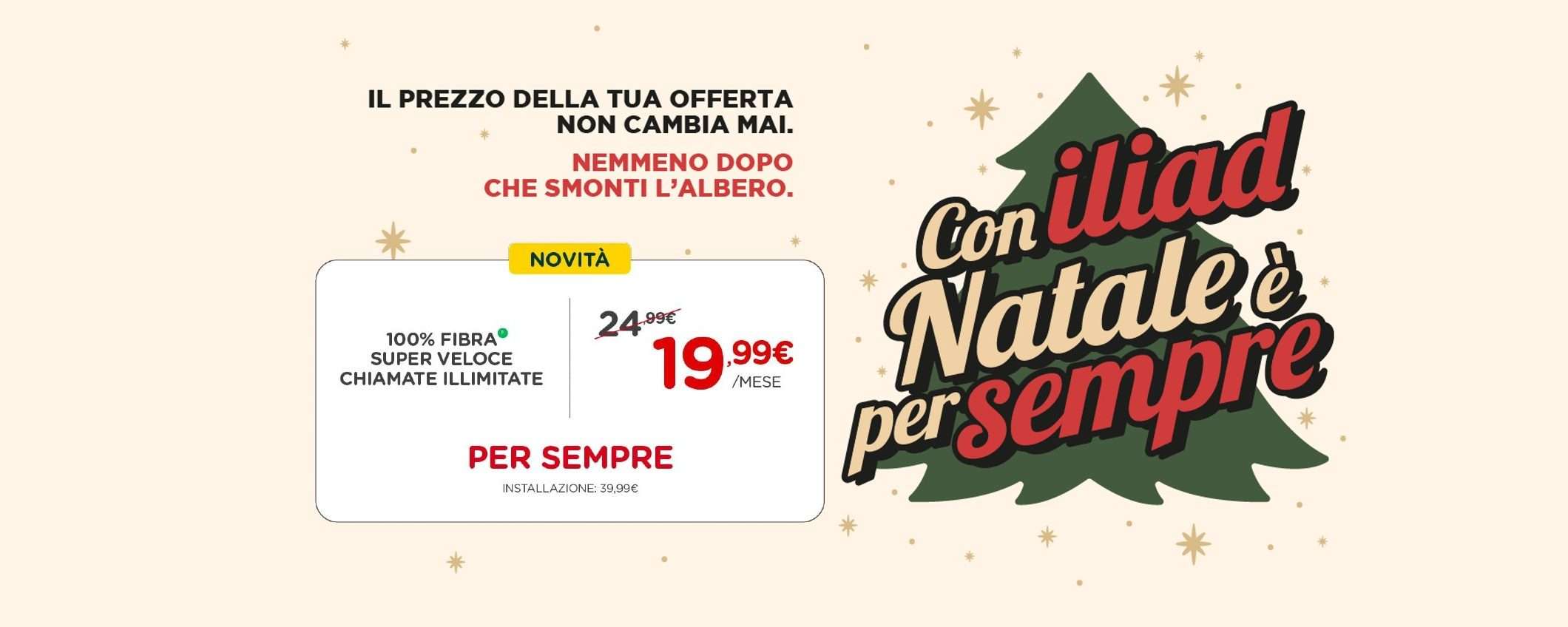 A Natale la Fibra Iliad è ancora più conveniente se utilizzi una SIM a partire da 9,99 euro mensili.