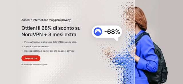 Per quanto riguarda invece la VPN, il punto di riferimento in Italia e all’estero è NordVPN, in grado di regalare la migliore esperienza streaming possibile unita a una sicurezza superiore rispetto alla concorrenza grazie a funzionalità esclusive come Threat Protection. Oggi è possibile attivare il piano di due anni in offerta a 3,69 euro al mese, con sconti fino al 68% più tre mesi extra gratis.