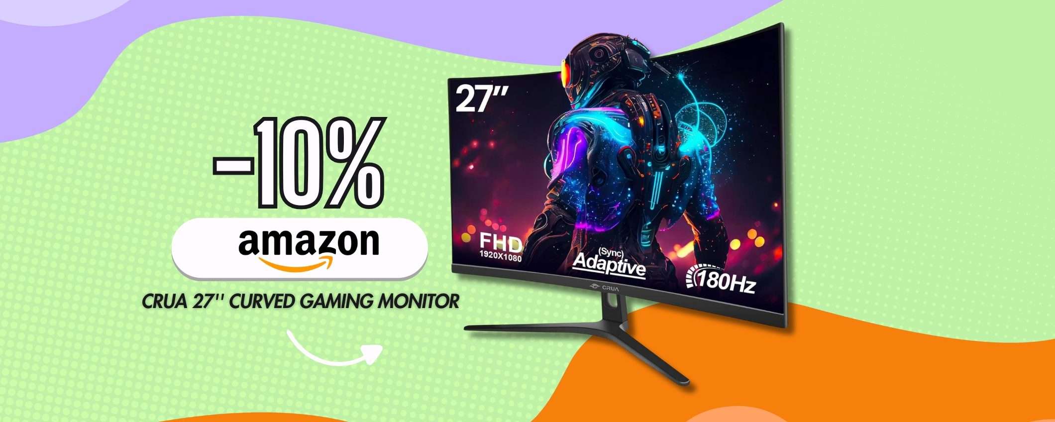 A soli 144,39€ su Amazon, il monitor da gaming firmato CRUA con pannello da 27″ curvo e in Full HD è un acquisto semplice e sicuro. Se sei interessato, collegati ora in pagina e aggiungilo al carrello per risparmiare istantaneamente il 10%.