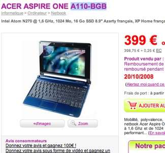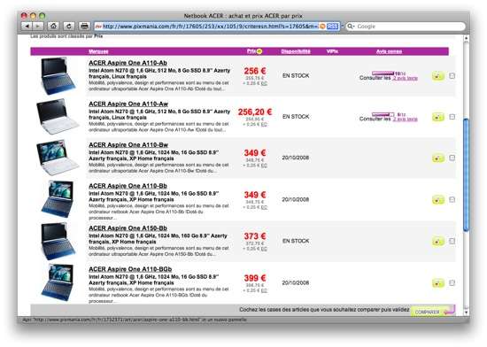 Sul fronte prezzi , la faccenda si fa più confusa. Il sito transalpino cita infatti come fonte dell’anteprima il rivenditore francese Pixmania: sulle pagine del sito di ecommerce, tuttavia, della versione 1GB di RAM con Linux non vi è traccia ( blogeee.net parla di un costo di 299 euro), mentre le altre si presentano con un prezzo di listino diverso da quello riportato. Ci vogliono 373 euro per portarsi a casa l’ A150-BB , 399 euro per l’ A110-BGB e infine 349 euro per l’ A110-BW .