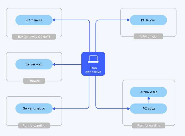 Meshnet è una funzione gratuita di NordVPN. Una volta configurato, il servizio crea una rete LAN virtuale per mettere in comunicazione tra di loro dispositivi a prescindere dalla loro reale posizione. I campi d’applicazione di questa funzionalità integrata in NordVPN sono diversi.