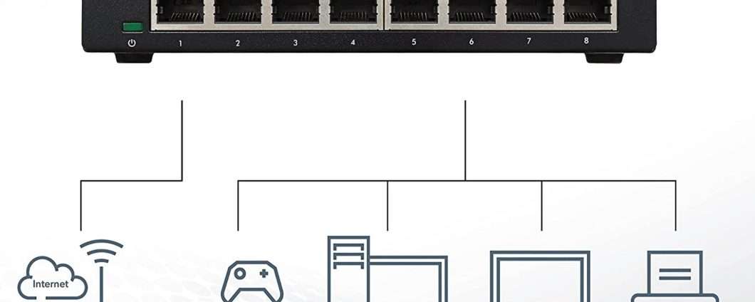 Per quanto la connessione Wi-Fi sia assolutamente comoda e pratica, quando si parla di prestazioni nulla riesce a superare il cavo. Laddove però il router non offre abbastanza porte, puoi sfruttare un dispositivo come il Netgear GS308, uno switch ethernet ideale per l’ufficio, disponibile oggi a soli 23 euro su Amazon.