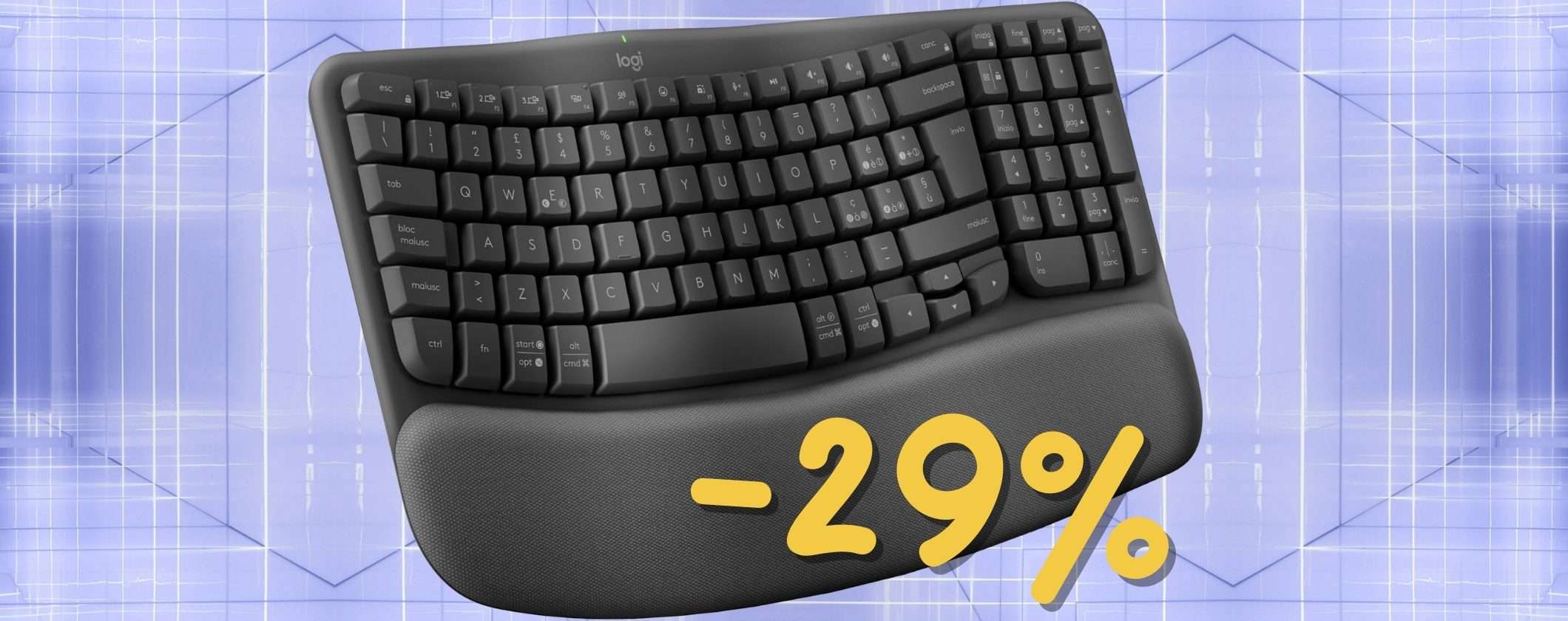 Se lavori al computer hai sicuramente bisogno di una tastiera e un mouse ergonomici in modo da fare meno fatica e oggi ti segnaliamo uno di questi da prendere al volo. Se vai subito su Amazon puoi mettere nel tuo carrello la tastiera wireless ergonomica Logitech Wave Keys a soli 59,99 euro, invece che 84,99 euro.
