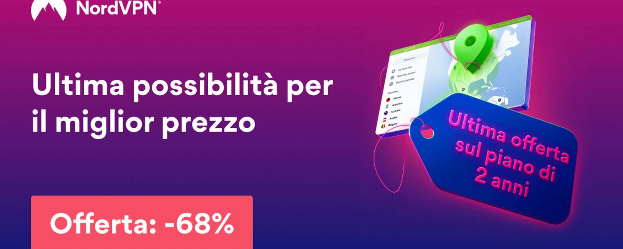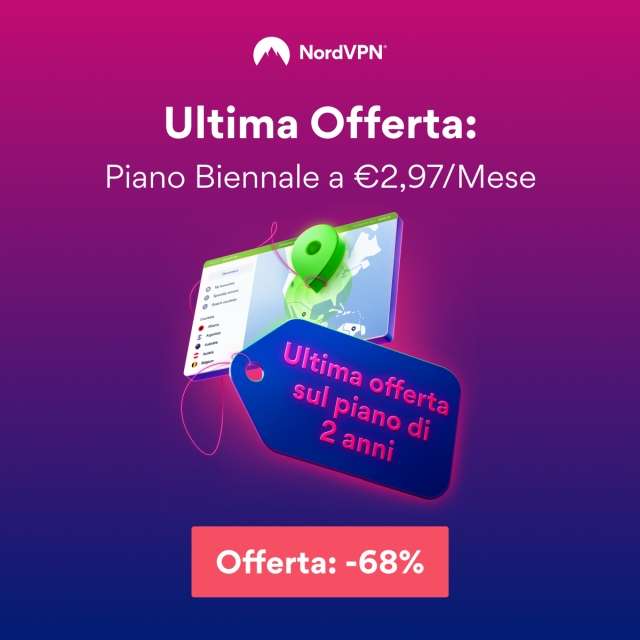 Gli utenti che cercano un’ottima soluzione per navigare su Internet in totale sicurezza, nascondendo il vero indirizzo IP, non devono lasciarsi sfuggire l’offerta di NordVPN. Fino al 13 maggio è infatti possibile sottoscrivere l’abbonamento biennale, pagando solo 2,97 euro/mese, una cifra estremamente bassa viste le funzionalità avanzate e la protezione garantita per sei dispositivi in contemporanea.
