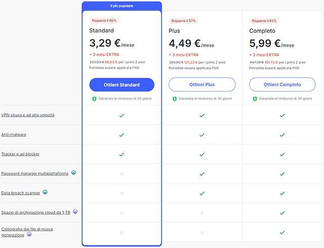 Le opzioni non finiscono qui: ci sono anche i piani Plus e Completo che aggiungono ulteriori funzionalità a partire da un password manager multipiattaforma, per arrivare all’utilissimo Data Breach Scanner che avvisa tempestivamente dell’eventuale violazione dei propri dati, ma senza dimenticare 1 TB di spazio sul cloud per il backup crittografato. In piena sicurezza, sarà più piacevole e rilassante anche gustarsi un buon caffè.