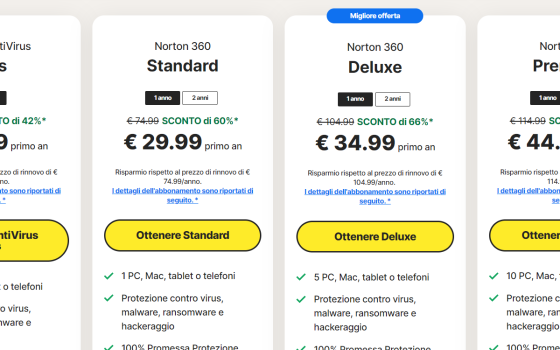 Partendo da un costo davvero basso, Norton Standard invece ti consente di avere: