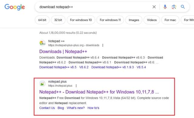 Notepad++ è un popolare editor di testo open source che offre funzionalità molto utili, come il supporto per i linguaggi di programmazione. La sua notorietà viene spesso sfruttata per pubblicizzare siti fasulli sui motori di ricerca. Lo sviluppatore del software (Don Ho) ha chiesto aiuto agli utenti per segnalare un sito a Google.