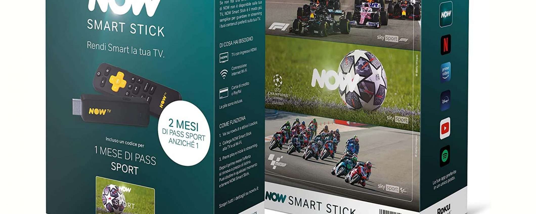 Grazie ad una serie di offerte combinate è possibile acquistare su Amazon la NOW Smart Stick con due mesi di sport inclusi, pagando solo 18,74 euro. Anche se Sky Italia trasmetterà solo 3 partite per ogni turno di serie A, si tratta comunque di un’offerta imperdibile per gli utenti che seguono altre competizioni calcistiche (tra cui la Champions League) o altri sport.