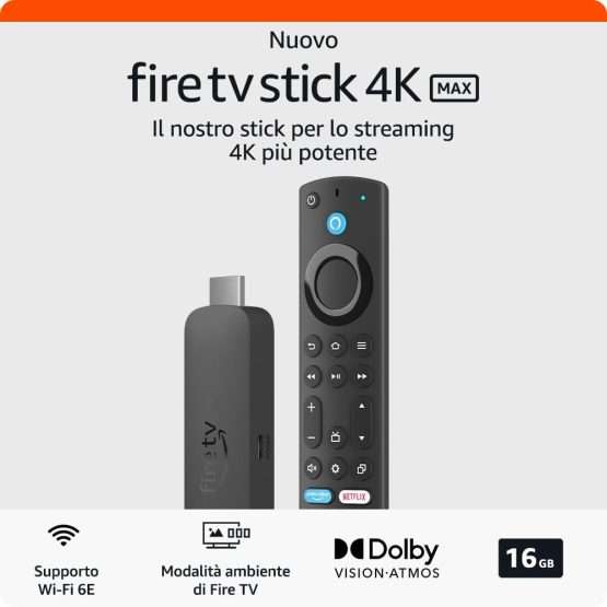 - La NUOVA Fire Stick 4K Max a soli 49,99€ con sconto del 38%.