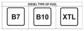 La categoria dei diesel è simboleggiata da un quadrato all’interno del quale si possono trovare sigle del tipo B7, B10 o XTL. Nei primi due casi il numero indica la percentuale di biodiesel (da cui la sigla “B”) inclusa nella miscela, al pari di quanto succede con le benzine; la terza sigla identifica per contro un “gasolio sintetico non derivato dalla raffinazione del greggio“.