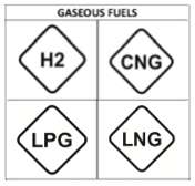 - il rombo identifica il carburante gassoso, accompagnato dalle sigle H2, CNG, LPG e LNG