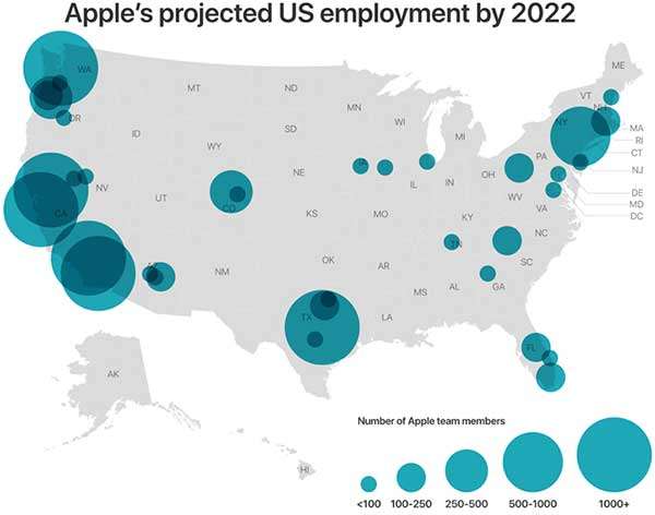 Dall’inizio dell’anno Apple ha assunto 6.000 persone da destinare alla propria forza lavoro negli Stati Uniti. Il numero complessivo dei dipendenti negli USA, stando a quanto si legge sul sito ufficiale, è pari a 80.000, mentre in tutto il mondo il numero sale a 132.000 contando solo i contratti a tempo pieno. Mire espansionistiche per la mela morsicata, dunque, nonostante le new entry del catalogo iPhone non stiano riscontrando il successo sperato a livello commerciale.